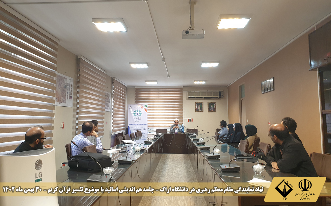 دومین جلسه از سلسله جلسات تفسیر قرآن کریم روز دوشنبه مورخ 30 بهمن ماه 1402 با حضور حجت الاسلام والمسلمین دکتر عبداللهی در سالن جلسات دانشکده کشاورزی دانشگاه اراک برگزار گردید.