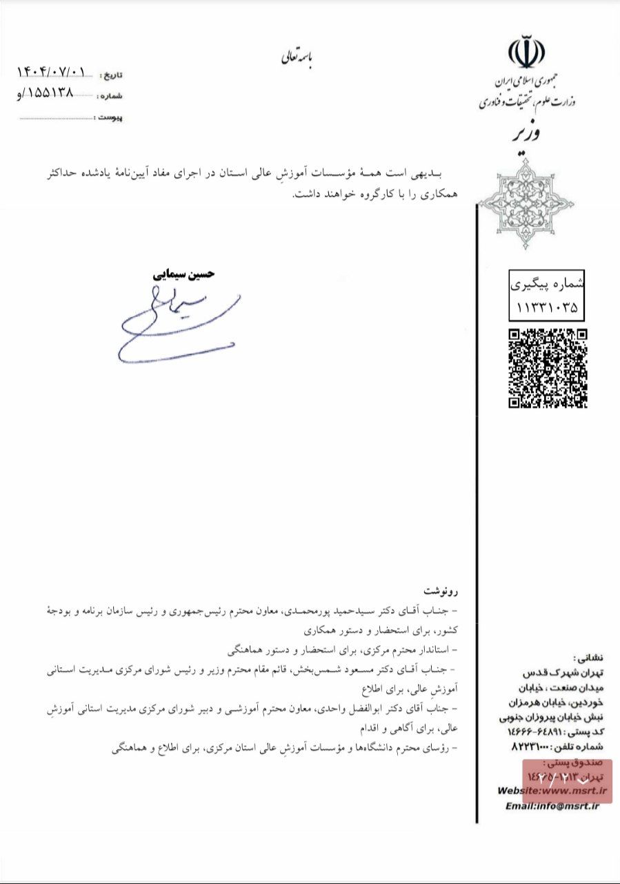 در متن این حکم با اشاره به مصوبات شورای عالی انقلاب فرهنگی و اسناد بالادستی، بر ضرورت انسجامبخشی به فعالیتهای آموزشی، پژوهشی و فرهنگی دانشگاهها و مراکز آموزش عالی استان تأکید شده و مأموریتهای مهمی از جمله برنامهریزی، هماهنگی و همافزایی میان دانشگاهها و مؤسسات آموزش عالی استان، ارتقای کیفیت آموزش و پژوهش، تبادل تجربیات، ایجاد همافزایی میان ظرفیتهای علمی استان و پیگیری مأموریتهای محولشده از سوی وزارت علوم بر عهده دانشگاه معین استان گذاشته شده است.