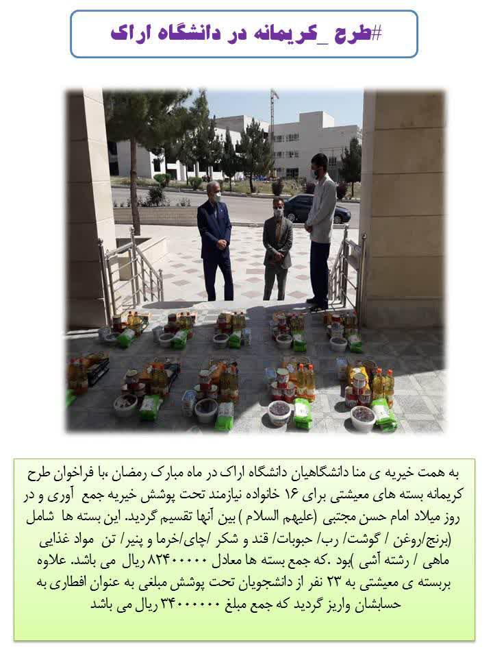 طرح کریمانه بسته های معیشتی برای 16 خانواده تحت پوشش